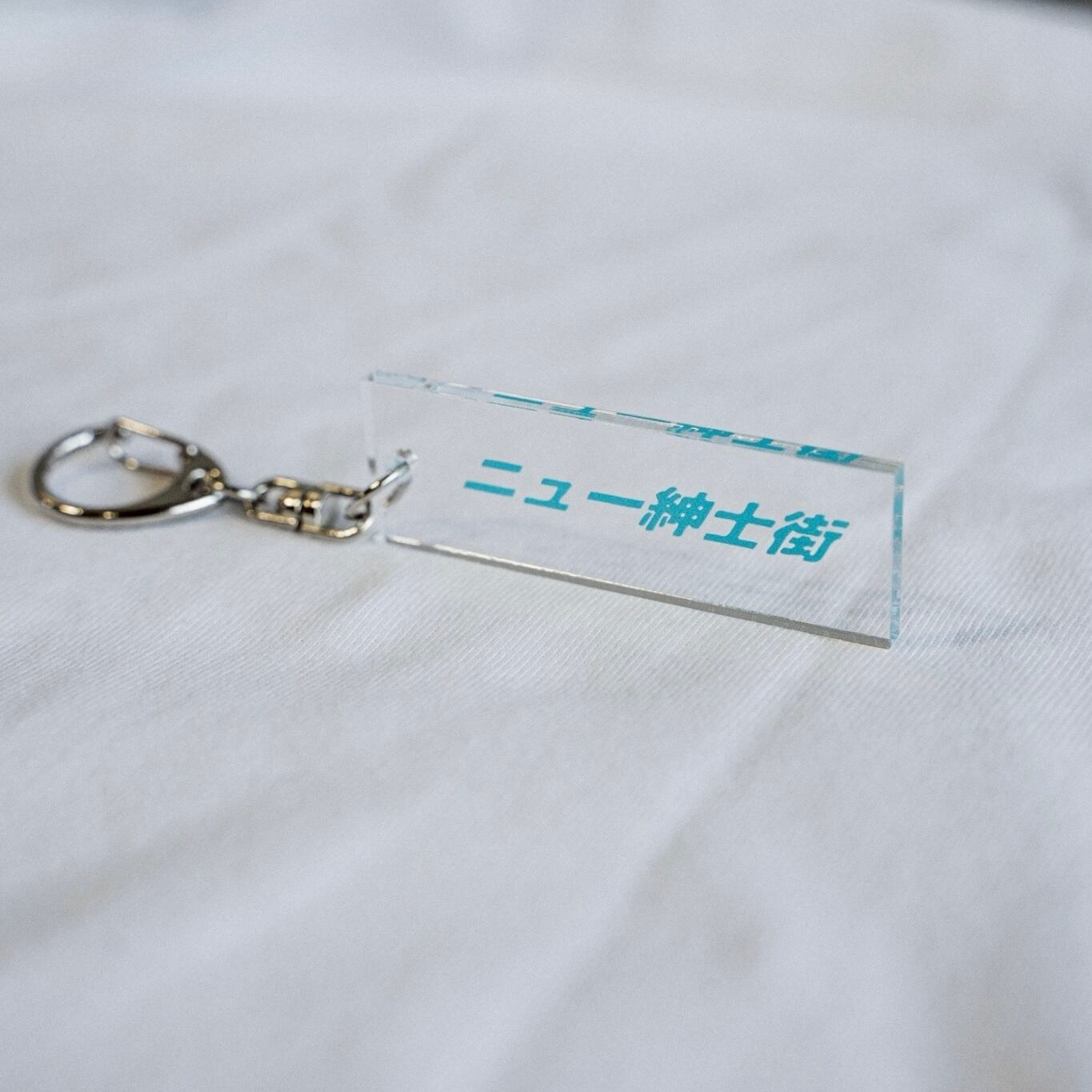 ”ニュー紳士街”のアクリル素材のキーホルダー